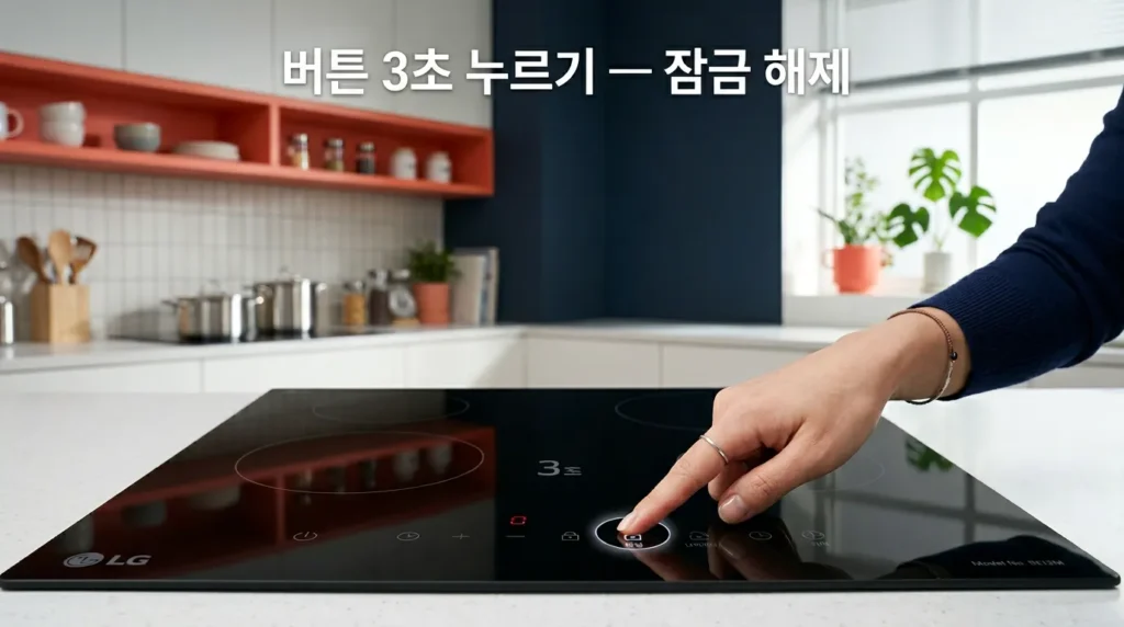 ✅ LG전자 공식 가이드(2025) 기준, 잠금 해제는 전원 버튼 외 임의 버튼을 3초 이상 누르면 돼요.