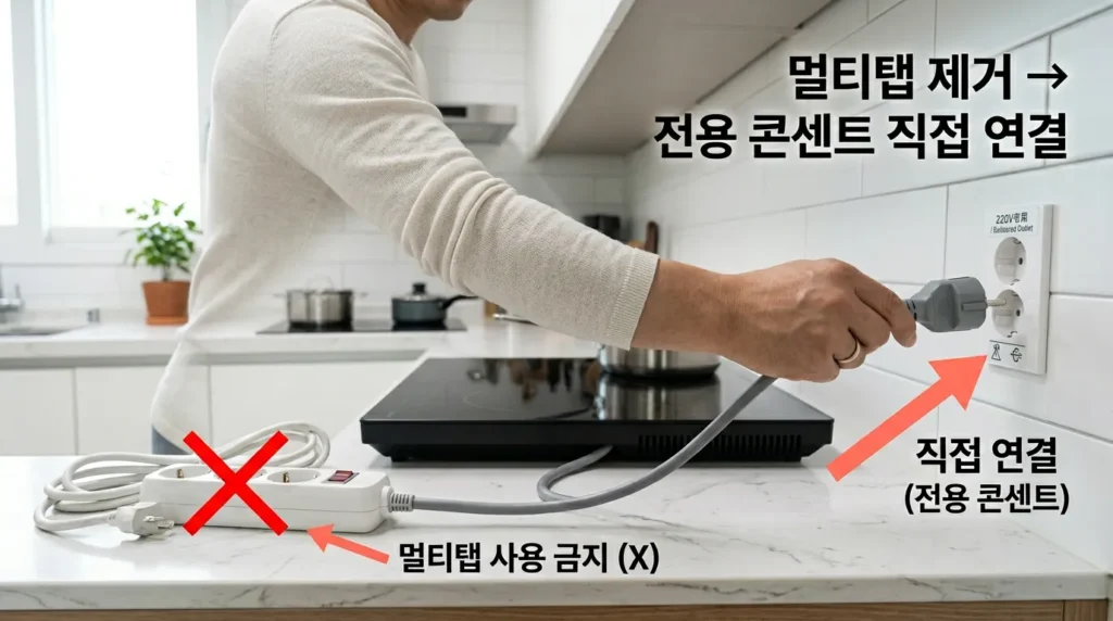 3. 멀티탭 제거 → 전용 콘센트에 직접 연결