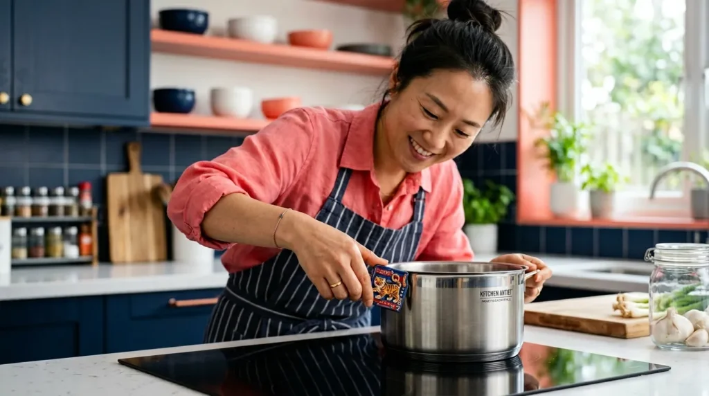근데 이게 좀 의외인 게요 — 냄비가 너무 커도 안 된다는 걸 모르는 분이 생각보다 많아요.